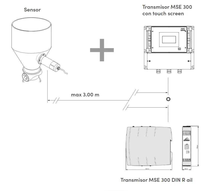 El sensor está conectado al transmisor a través de un cable blindado de 4 hilos. La distancia máxima debe ser de 300 m.