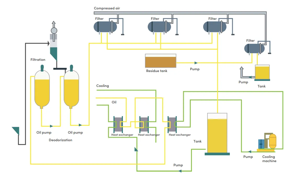 All vegetable oil refineries operate under the same basic principles. Crude oil is obtained from an ejector or a solvent extraction plant, since it has impurities that must be eliminated for the oil to be edible, more digestible and more stable for its storage. This impurity elimination process is called refining.