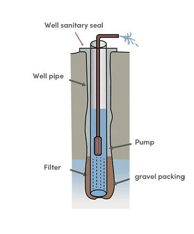It is the oldest and most used type of catchment, it is done by drilling a well to the aquifer, the depth in most cases between 30 m and 300 m or more.