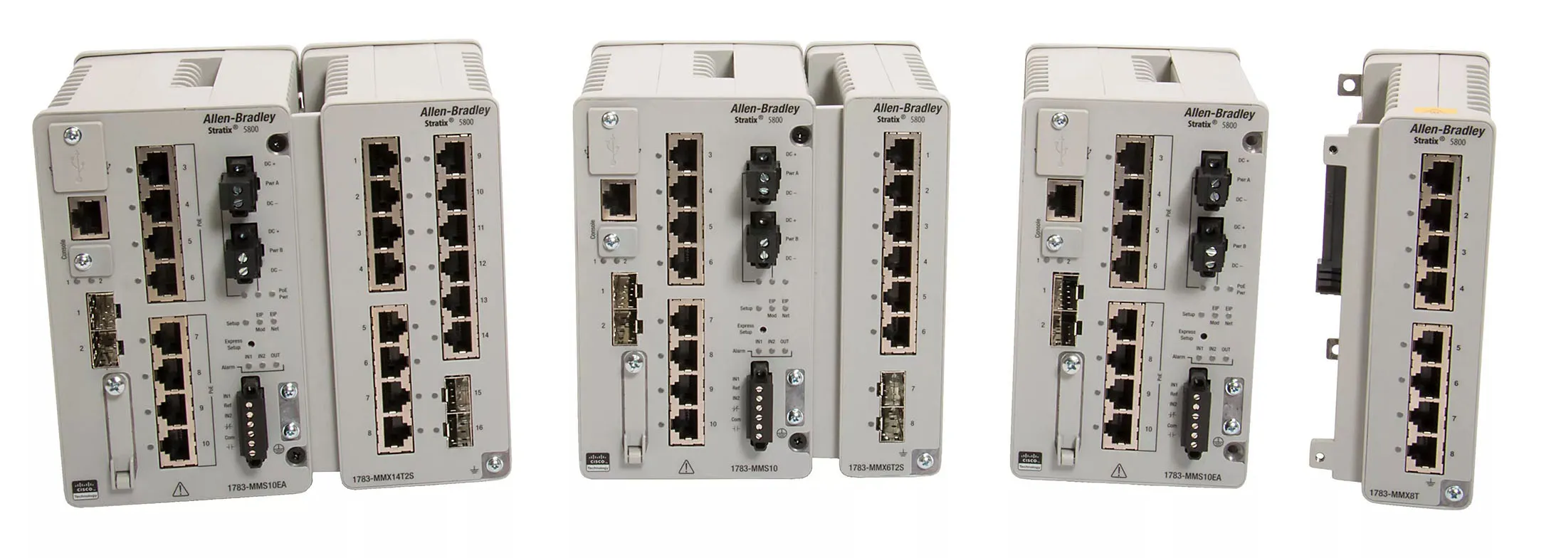 They enable Layer 2 switching and Layer 3 routing, using a combination of Gigabit Ethernet (GE) with Power over Ethernet (PoE), GE fiber ports, and Ten G. Additionally, this switch offers DLR with three-ring support, which allows more devices to be connected at the cell / area zone level for greater flexibility in network design such as network translators (NAT).