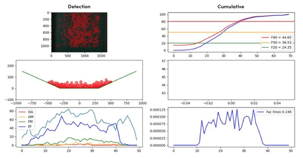 It is a system based on artificial vision and LiDAR that measures the particle size distribution on conveyor belts and is applicable to crushing and grinding circuits.